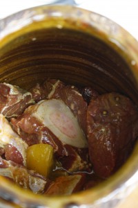 Recette préparée exclusivement par les hommes, dans une jarre en terre , placée de nombreuses heures dans les cendres du four du hammam.