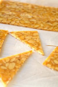 La nougatine se conserve dans une boîte bien hermétique à température ambiante, elle ne supporte pas l’humidité.