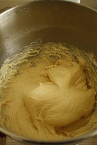 Démarrer en vitesse 2 ( pour le kitchenaid ) pour 2 minutes. La pâte colle, c’est normal.