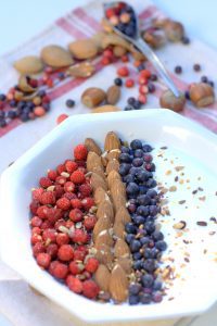 Sur le dessus poser les fruits décoration type » smoothie bawl « .